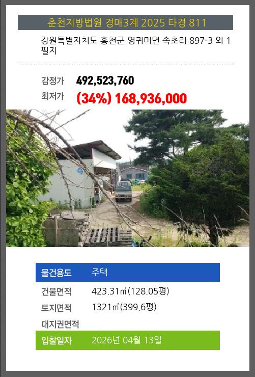 본건은 강원특별자치도 홍천군 영귀미면 속초리 897-3 외 1필지