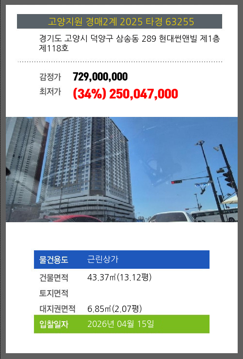 본건은 경기도 고양시 덕양구 삼송동 289 현대썬앤빌 제1층 제118호
