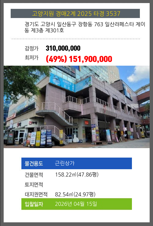 본건은 경기도 고양시 일산동구 장항동 763 일산라페스타 제이동 제3층 제301호