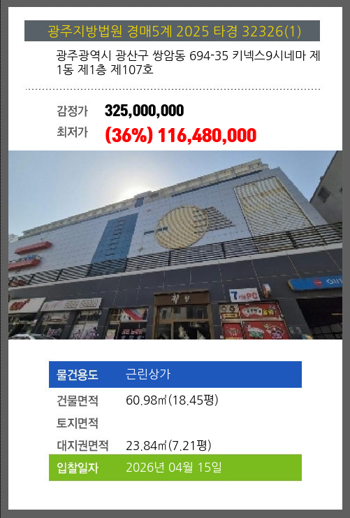 광산상가경매 광산구 쌍암동 694-35 키넥스9시네마 제1동 제1층 제107호 №2025 타경 32326(1)