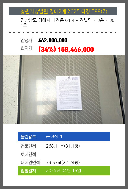 본건은 경상남도 김해시 대청동 64-4 서현빌딩 제3층 제301호