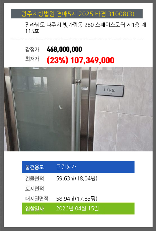 본건은 전라남도 나주시 빛가람동 280 스페이스코웍 제1층 제115호