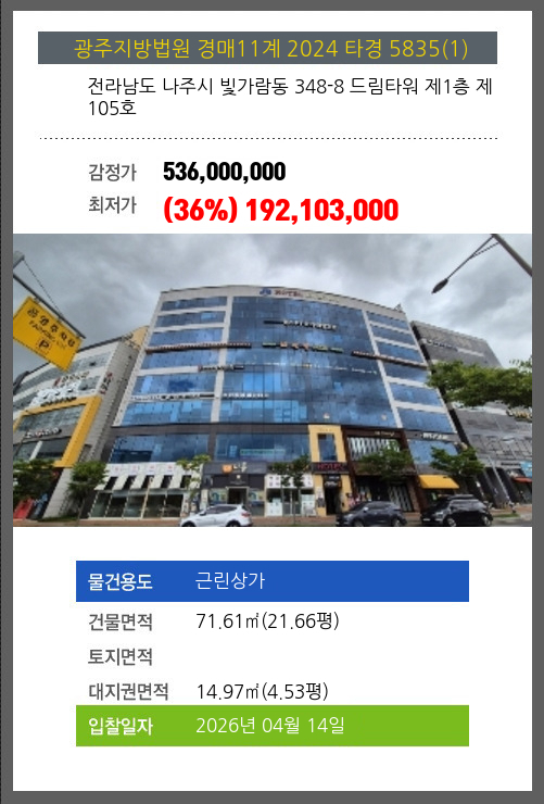 나주상가경매 나주시 빛가람동 348-8 드림타워 제1층 제105호 №2024 타경 5835(1)