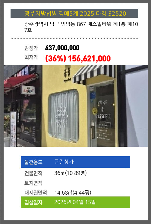 본건은 광주광역시 남구 임암동 867 에스알타워 제1층 제107호