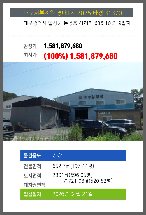 달성공장경매 달성군 논공읍 삼리리 636-10 외 9필지 №2025 타경 31370