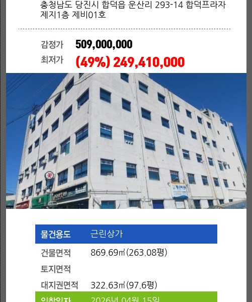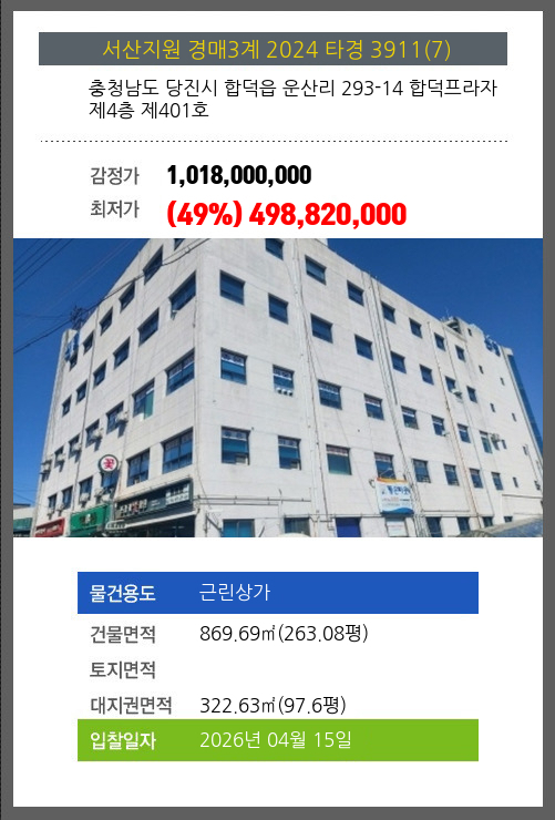 본건은 충청남도 당진시 합덕읍 운산리 293-14 합덕프라자 제4층 제401호