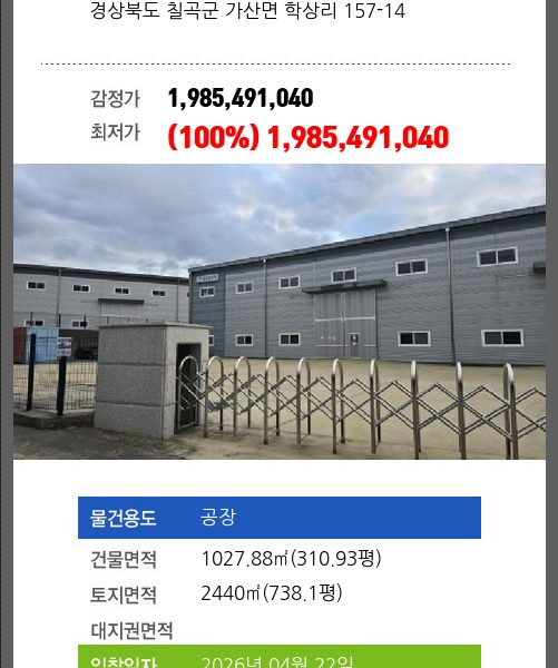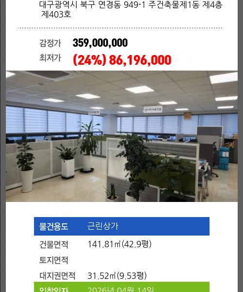 4회 유찰되어 감정가 대비 24%