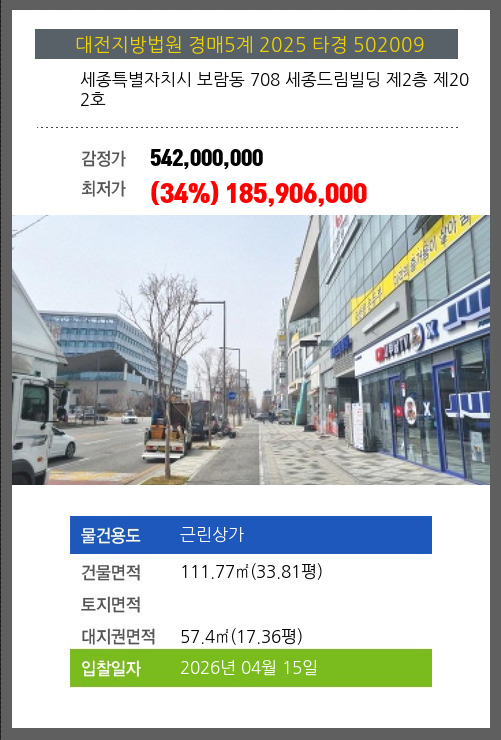 본건은 세종특별자치시 보람동 708 세종드림빌딩 제2층 제202호