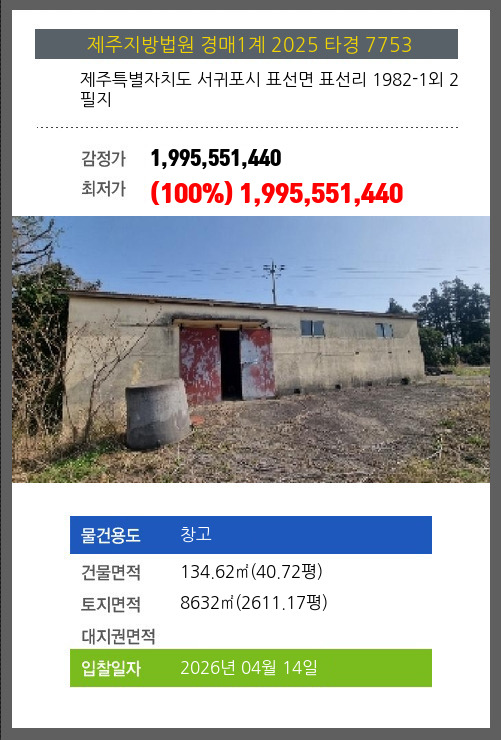 본건은 제주특별자치도 서귀포시 표선면 표선리 1982-1외 2필지