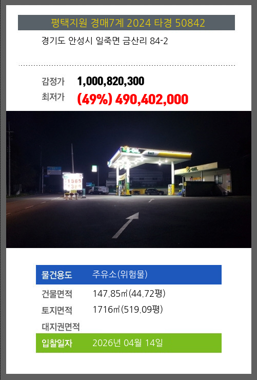 소재하는 주유소(위험물)경매 물건의 포스팅입니다.