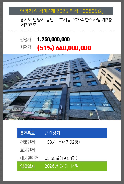 | 신건 | 2025-12-16 | 1,250,000,000 | 유찰 |