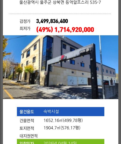 건물면적 285.92㎡ (86.49평) 채무자 ㈜** 최저가 (34%) 221,578,000