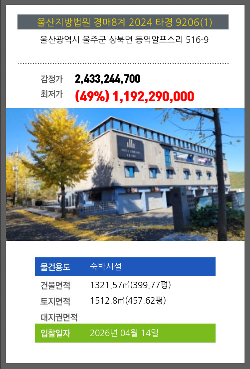 소재하는 숙박시설경매 물건의 포스팅입니다.