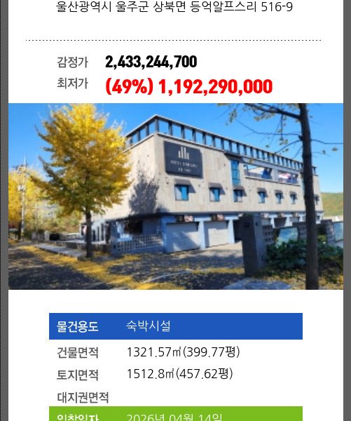 울주숙박시설경매 울주군 상북면 등억알프스리 535-7 №2024 타경 9206(2)