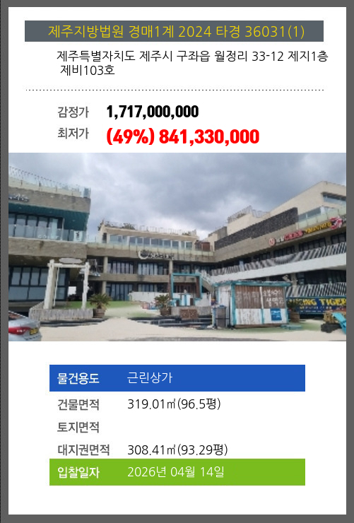 본건은 제주특별자치도 제주시 구좌읍 월정리 33-12 제지1층 제비103호