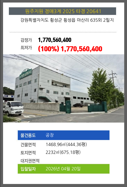 횡성공장경매 횡성군 횡성읍 마산리 635외 2필지 №2025 타경 20641