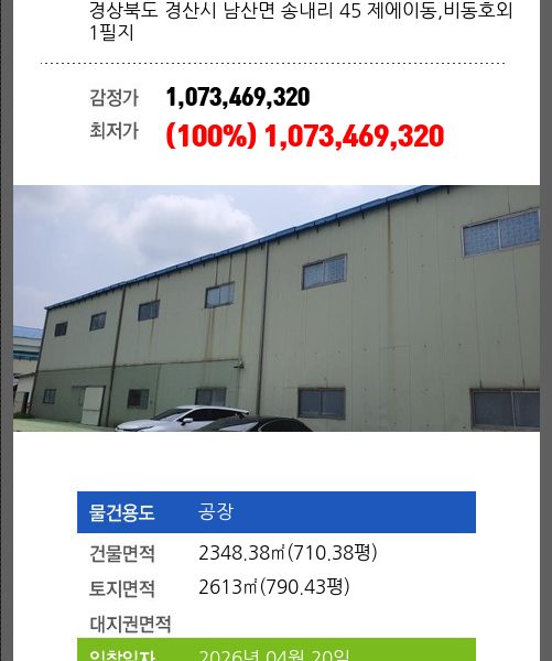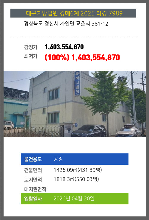 경산공장경매 경산시 자인면 교촌리 381-12 №2025 타경 7989
