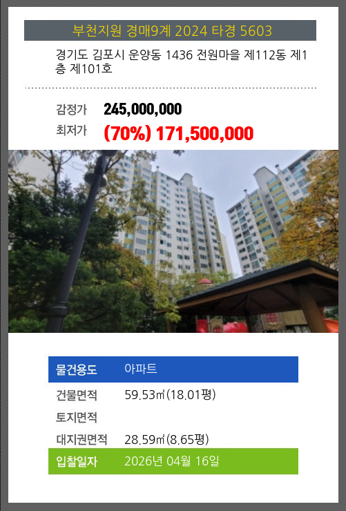 김포아파트경매 김포시 운양동 1436 전원마을 제112동 제1층 제101호 №2024 타경 5603