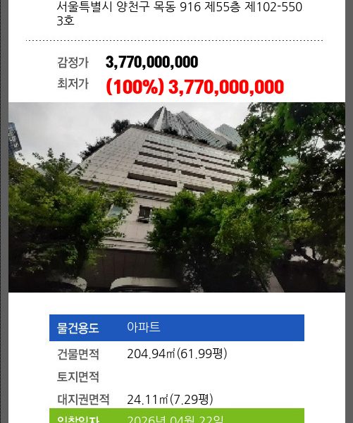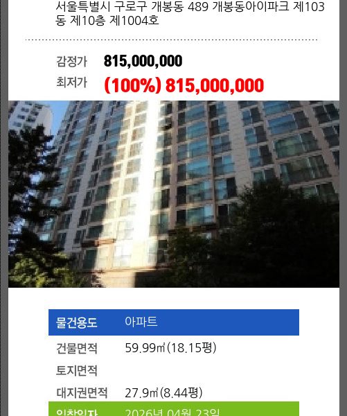 | 용도 | 아파트 | 채권자 | 이**외29명 | 감정가 | 846,000,000 |