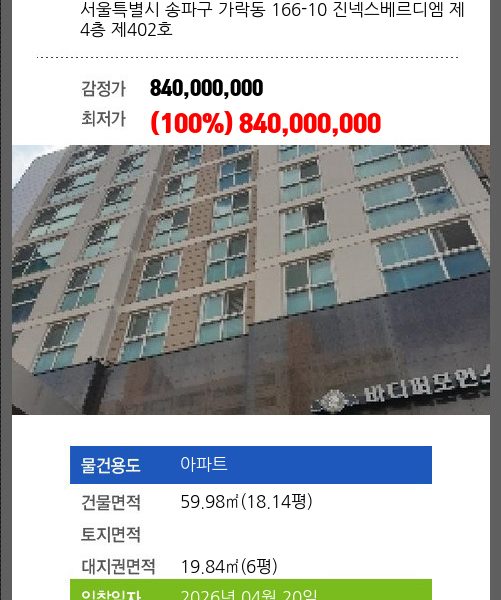 신건으로 감정가 대비 100%