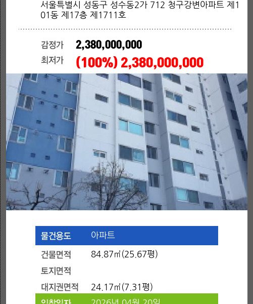 | 최초경매일 | 2026-04-20 | 배당종기일 | 2025-09-22 | 경매개시일 | 2025-07-07 |
