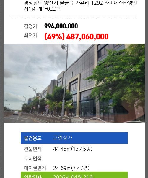 본건은 경상남도 양산시 물금읍 가촌리 1292 라피에스타양산 제1층 제1-013호