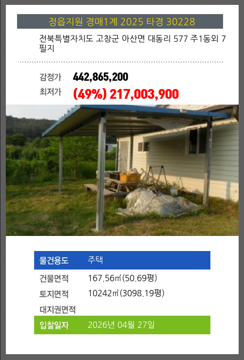 본건은 전북특별자치도 고창군 아산면 대동리 577 주1동외 7필지