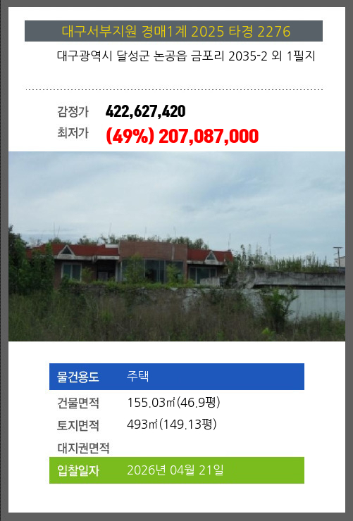 본건은 대구광역시 달성군 논공읍 금포리 2035-2 외 1필지