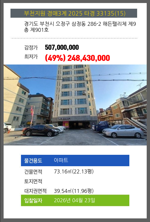 본건은 경기도 부천시 오정구 삼정동 286-2 해든팰리체 제9층 제901호