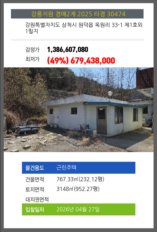본건은 강원특별자치도 삼척시 원덕읍 옥원리 33-1 제1호외 1필지