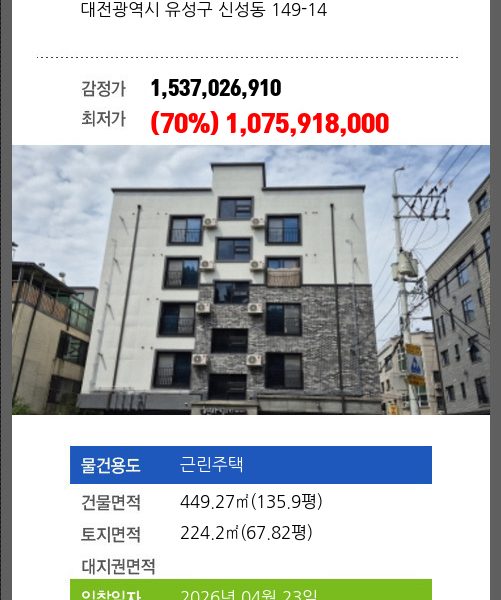 용도 근린주택 채권자 대** 감정가 2,156,969,500