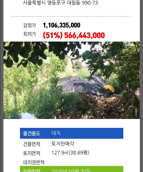 | 신건 | 2026-01-22 | 1,549,177,040 | 유찰 |