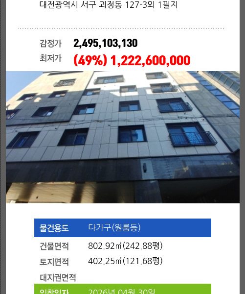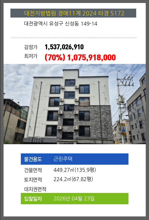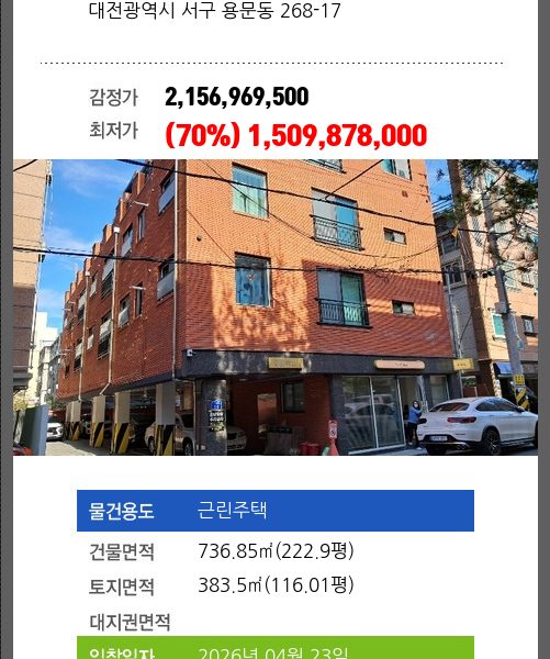 | 신건 | 2026-03-26 | 1,537,026,910 | 유찰 |
