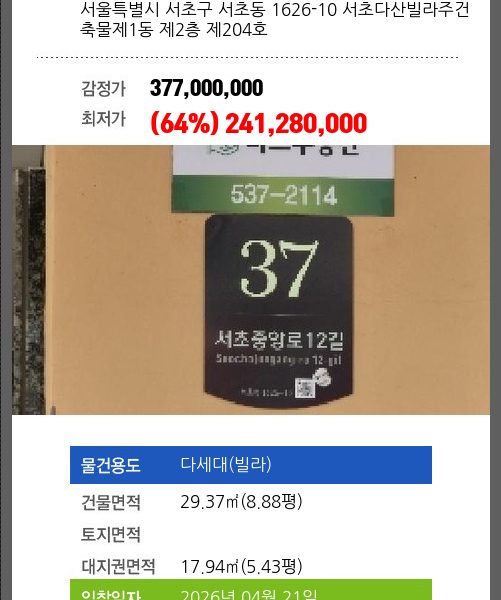 | 용도 | 아파트 | 채권자 | 공** | 감정가 | 3,000,000,000 |
