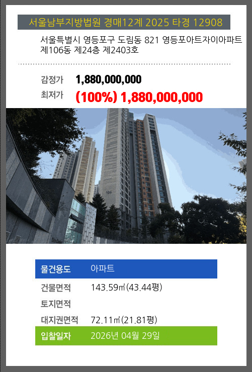 본건은 서울특별시 영등포구 도림동 821 영등포아트자이아파트 제106동 제24층 제2403호