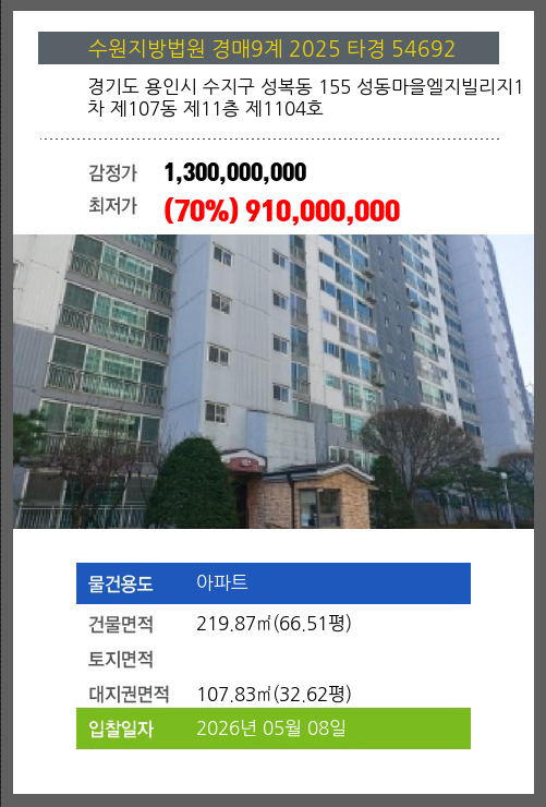 본건은 경기도 용인시 수지구 성복동 155 성동마을엘지빌리지1차 제107동 제11층 제1104호