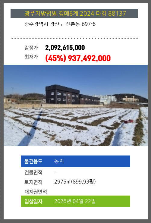 광산농지경매 광산구 신촌동 697-6 №2024 타경 88137