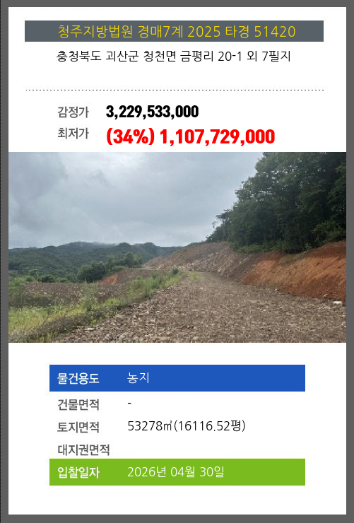 괴산농지경매 괴산군 청천면 금평리 20-1 외 7필지 №2025 타경 51420