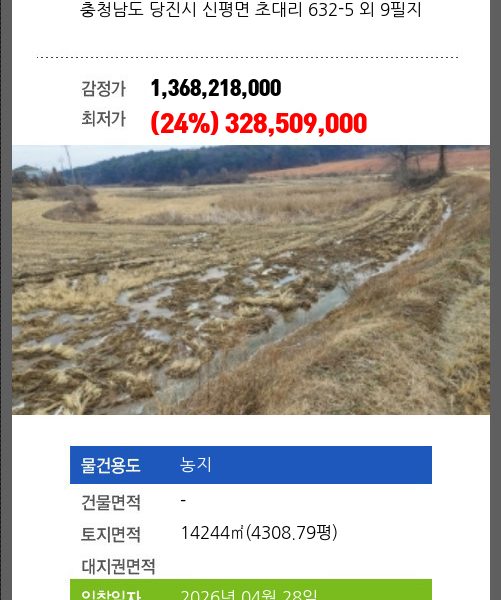 | 용도 | 농지 | 채권자 | 홍** | 감정가 | 976,614,000 |