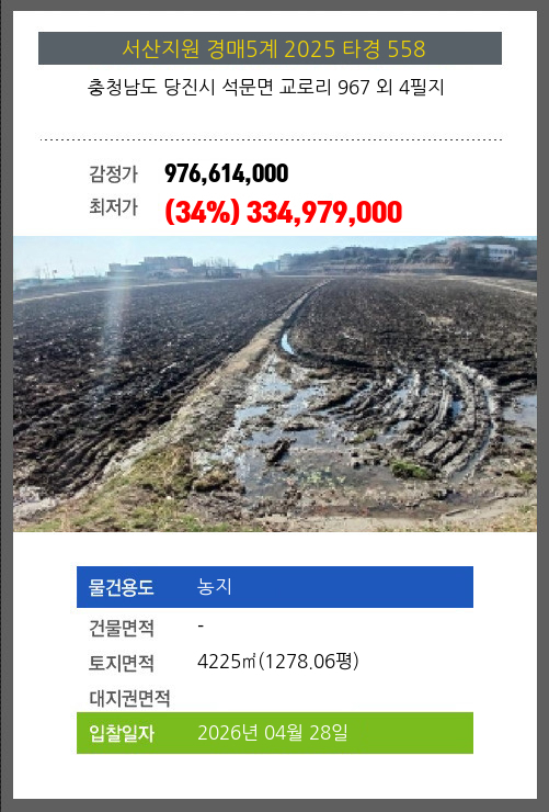| 소재지 | [지번] 충청남도 당진시 석문면 교로리 967 외 4필지 | ||||