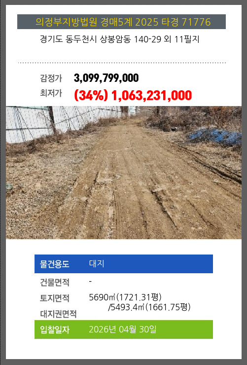 동두천대지경매 동두천시 상봉암동 140-29 외 11필지 №2025 타경 71776