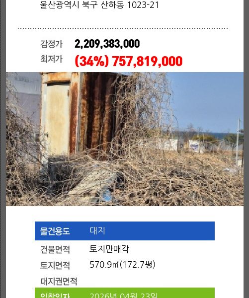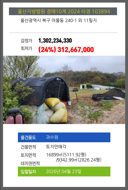 본건은 울산광역시 북구 어물동 240-1 외 11필지