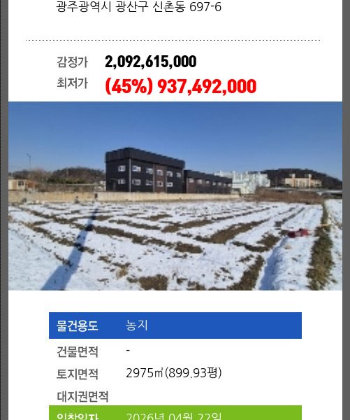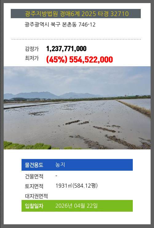 | 용도 | 농지 | 채권자 | 중** | 감정가 | 1,237,771,000 |