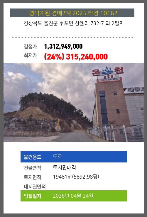 울진도로경매 울진군 후포면 삼율리 732-7 외 2필지 №2025 타경 10162