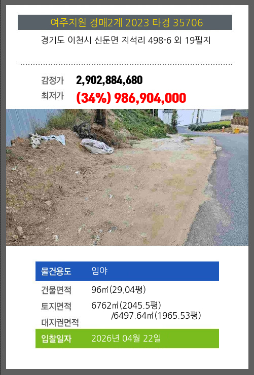 본건은 경기도 이천시 신둔면 지석리 498-6 외 19필지