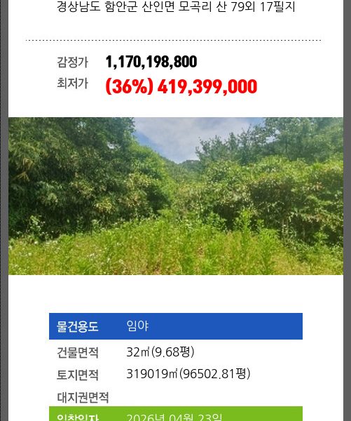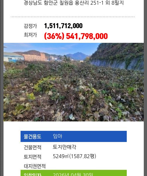 소재지 [지번] 경상남도 창원시 마산합포구 진북면 대티리 483 외 2필지