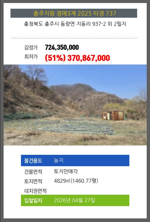 | 소재지 | [지번] 충청북도 충주시 동량면 지동리 937-2 외 2필지 | ||||