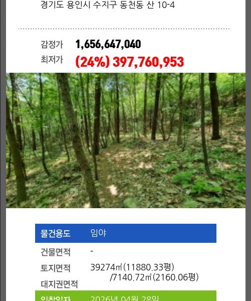 | 토지면적 | 595㎡ (179.99평) | 소유자 | 신**외2명 | 보증금 | (10%) 50,782,514 |