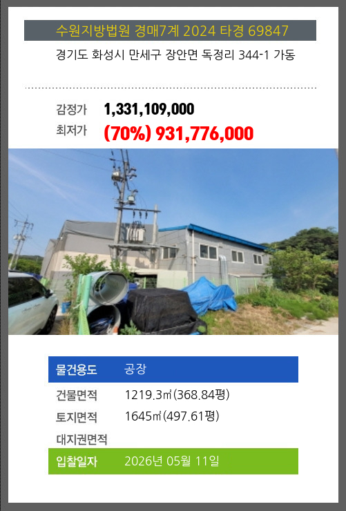 본건은 경기도 화성시 만세구 장안면 독정리 344-1 가동