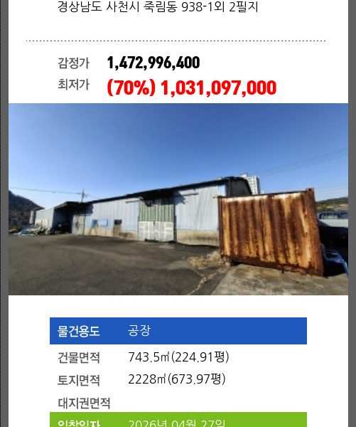 | 신건 | 2026-02-23 | 1,516,142,860 | 유찰 |
